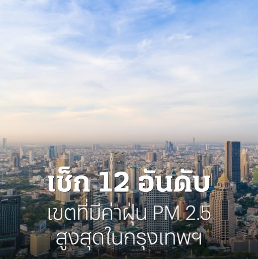 เช้านี้อากาศดี เช็ก 12 อันดับ เขตที่มี "ค่าฝุ่น PM 2.5" สูงสุดในกรุงเทพฯ