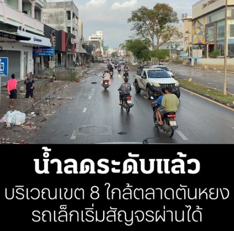 "น้ำท่วมหาดใหญ่" บริเวณเขต 8 ใกล้ตลาดตันหยง ระดับน้ำลดลง รถเล็กสัญจรผ่านได้แล้ว