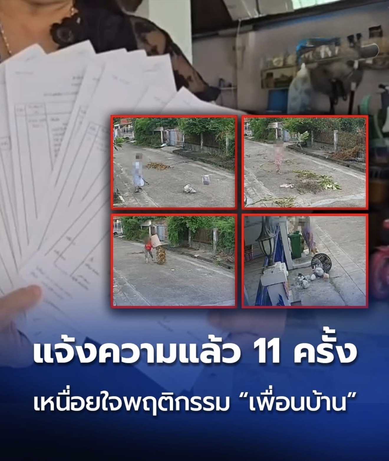 "มีอยู่วันหนึ่ง ตนออกมาหน้าบ้านเจอเขา ก็ได้ตรงเข้ามาหาตน และด่าทอด้วยคำหยาบคาย ตนไม่รู้จะทำอย่างไรกับพฤติกรรมที่เกิดขึ้นในแต่ละวัน ได้แต่ไปแจ้งความลงบันทึกประจำวันที่ สภ.บางศรีเมือง จนได้ใบแจ้งความมาถึง 11 ใบ แต่ทางด้านคดีก็ยังไม่มีความคืบหน้า ทำอะไรเขาไม่ได้เลย"
