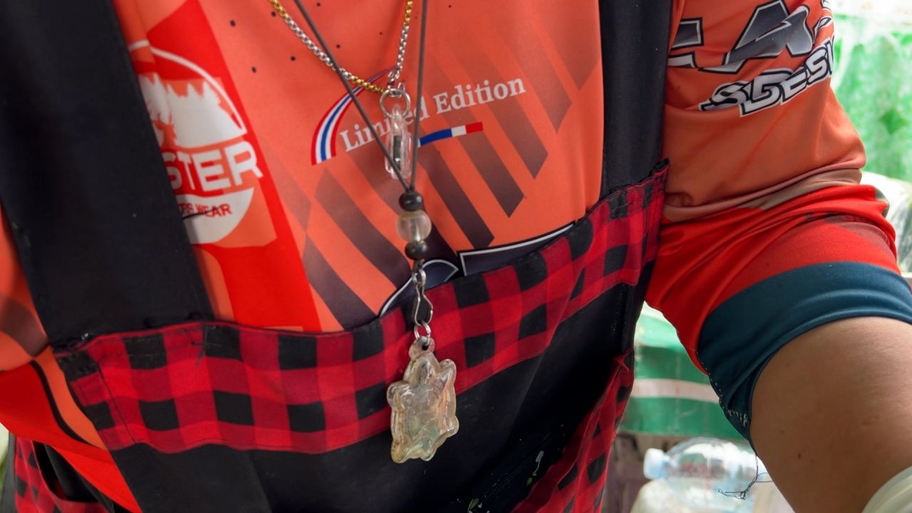 นางปราณี ปานคล้าม อายุ 51 ปี เปิดเผยว่า เศรษฐกิจย่ำแย่ อยู่ตลาดต้องคล้องพระกันคนละองค์ 2 องค์ เอามากันผีหลอก เพราะเงียบมาก เงียบแบบสุดๆ ลูกค้าไม่มีเลย เหลือกลับบ้านตลอด แถมเหลือเยอะมาก ขายได้ไม่ถึงครึ่ง คล้องพระกันเป็นแถบ กันผีมันซะตอนกลางวันเนี่ยแหละ